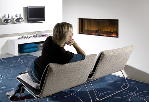 Elektrická krbová kazeta do minimalistických interiérov s efektom plameňa Optiflame, bez ohrevu.
