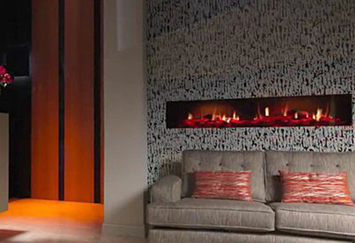 Krbová vložka s ohrevom a 3D efektom na zabudovanie do steny, nábytku alebo portálu.