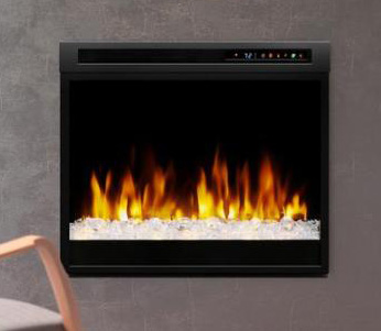 Elektrický krb s realistickým efektom ohňa Opti-Flame® LED a ohniskom s akrylovými kockami diamantových napodobenín.