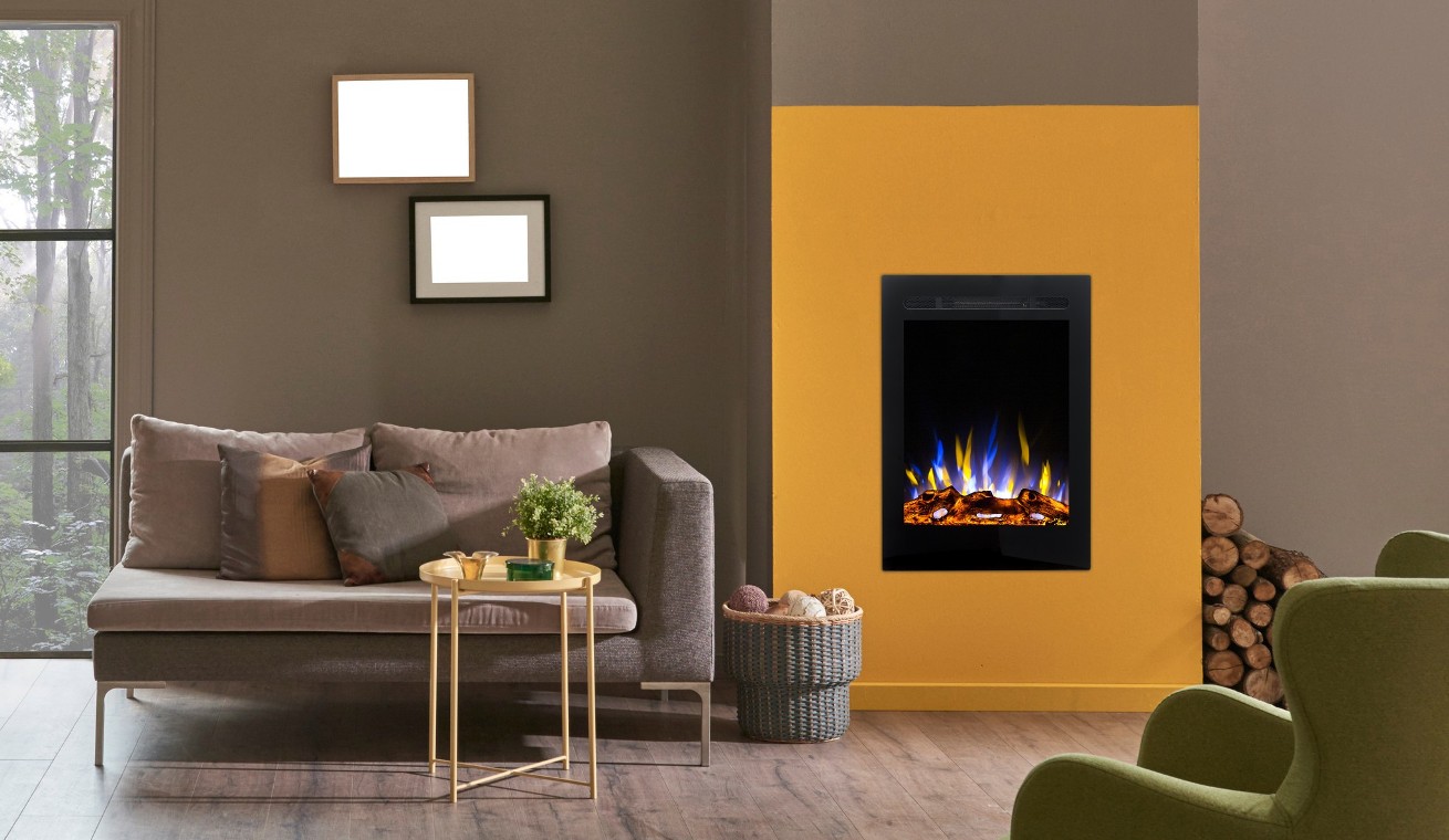 Vstavaný vertikálny elektrický krb s LED technológiou s možnosťou polienok, kamienkov aj kryštálov.