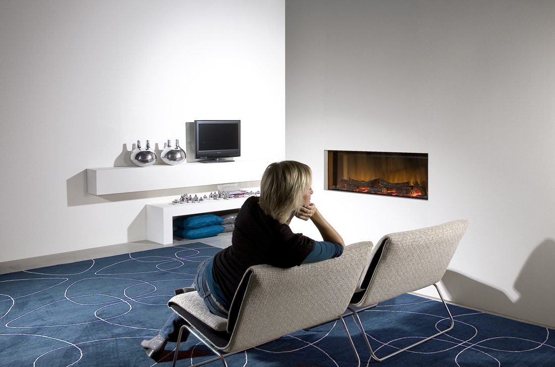 Elektrická krbová kazeta do minimalistických interiérov s efektom plameňa Optiflame, bez ohrevu.
