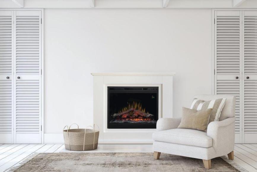 Elegantný krb v bielej obstavbe je ideálny pre klasické aj moderné bývanie.