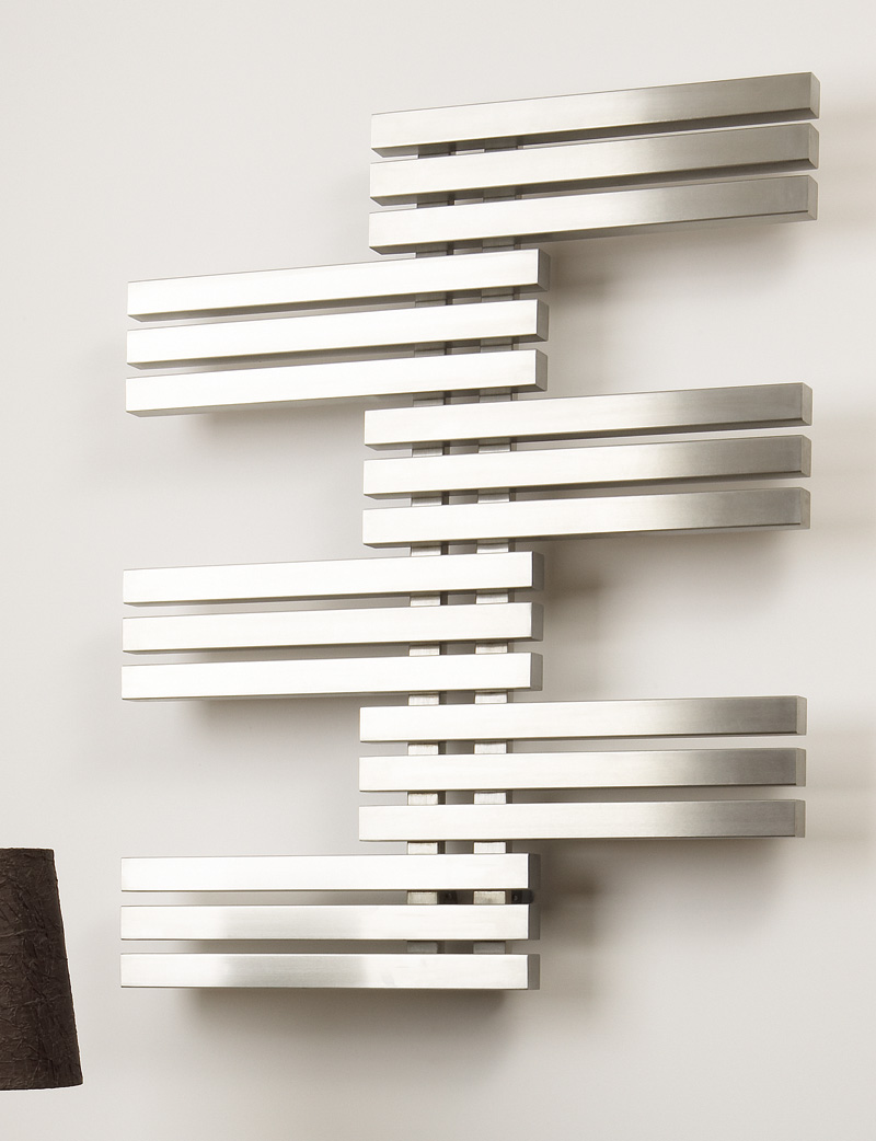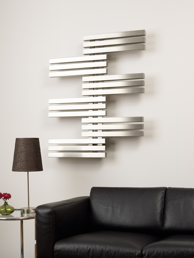 Symetrický elegantný radiátor, ktorý dodáva miestnosti pocit dynamiky.