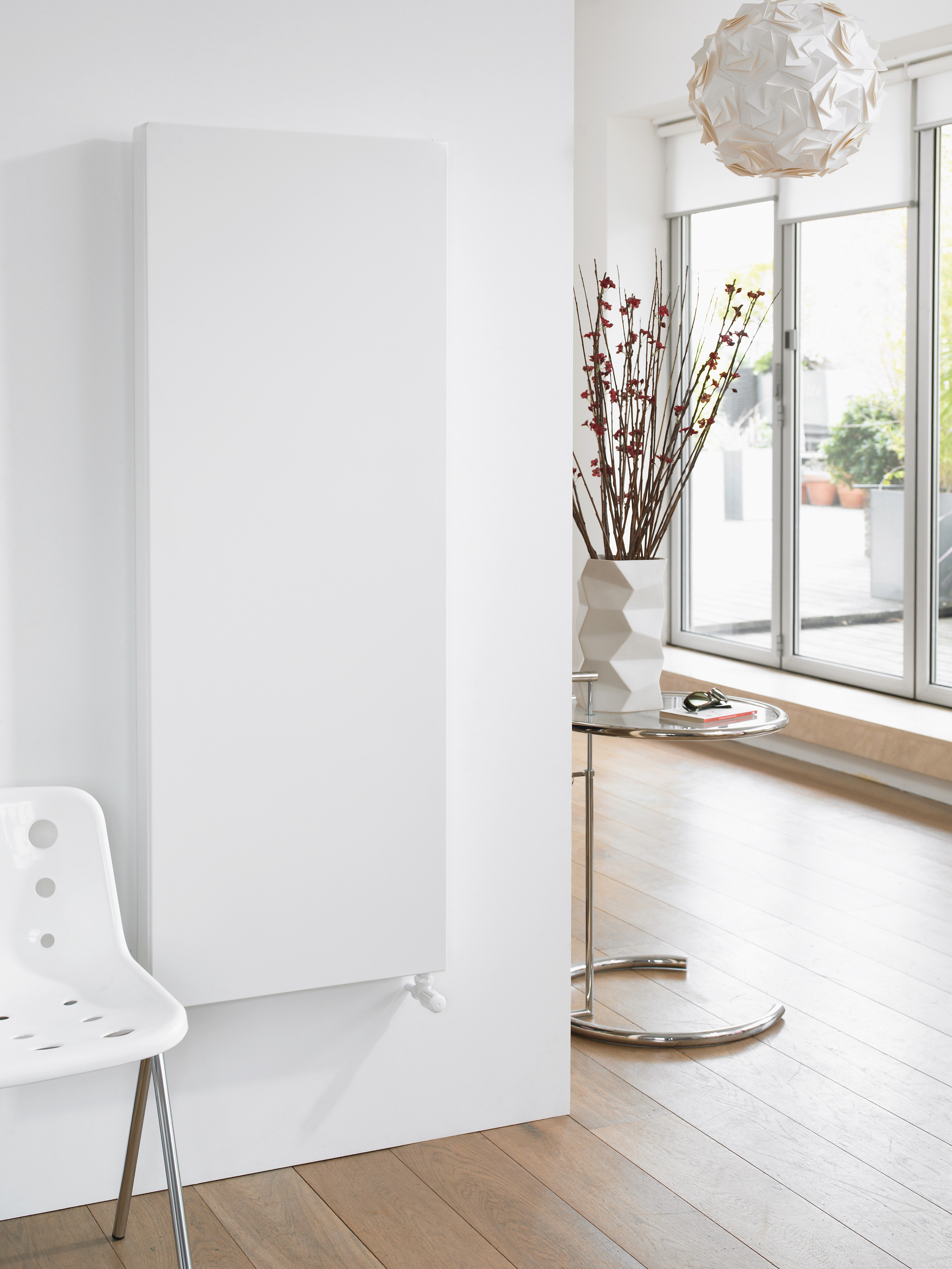 Moderný, biely, hladký radiátor vo vodorovnej aj zvislej verzii umožňuje flexibilné umiestnenie a efektívne vykurovanie.