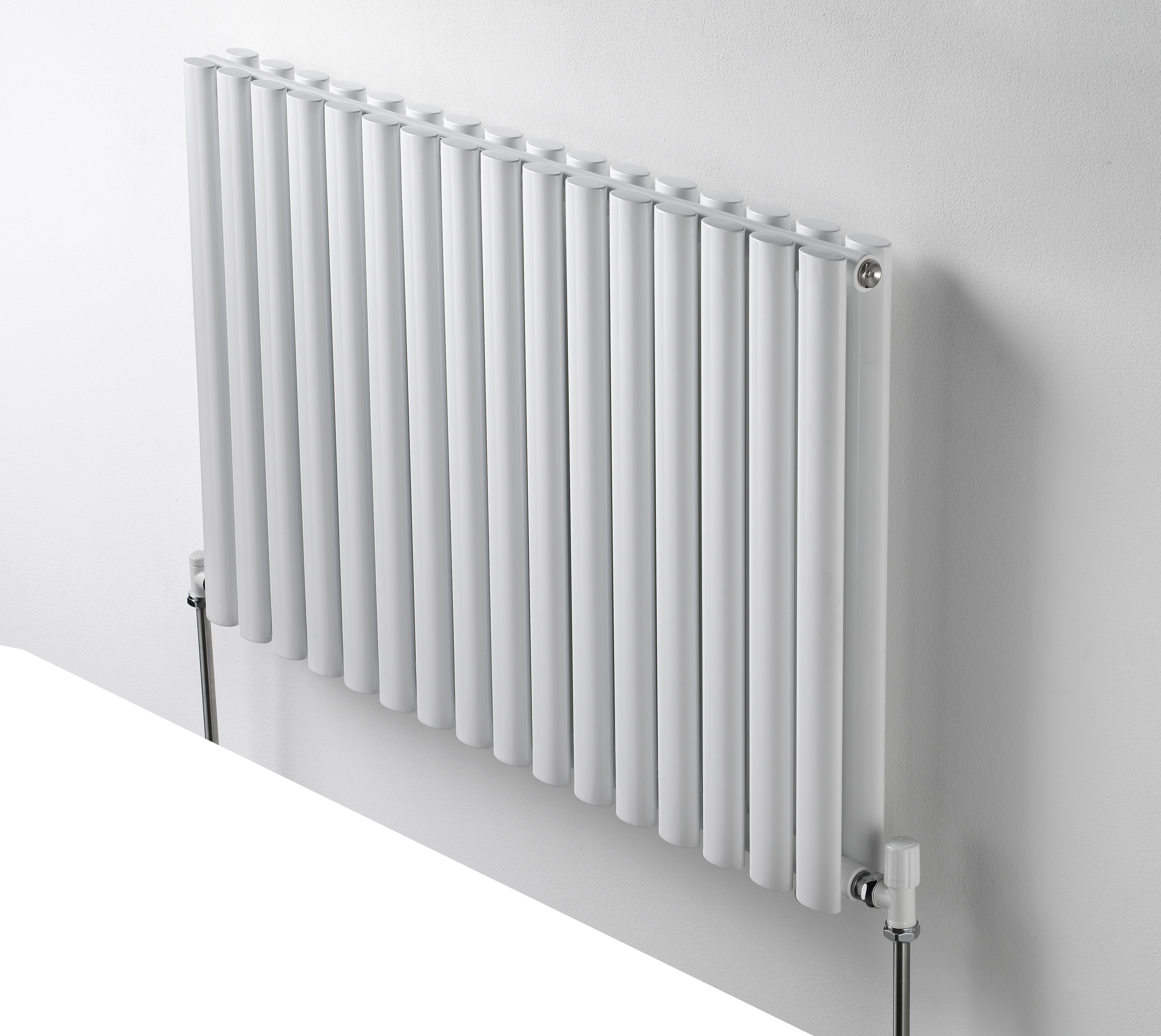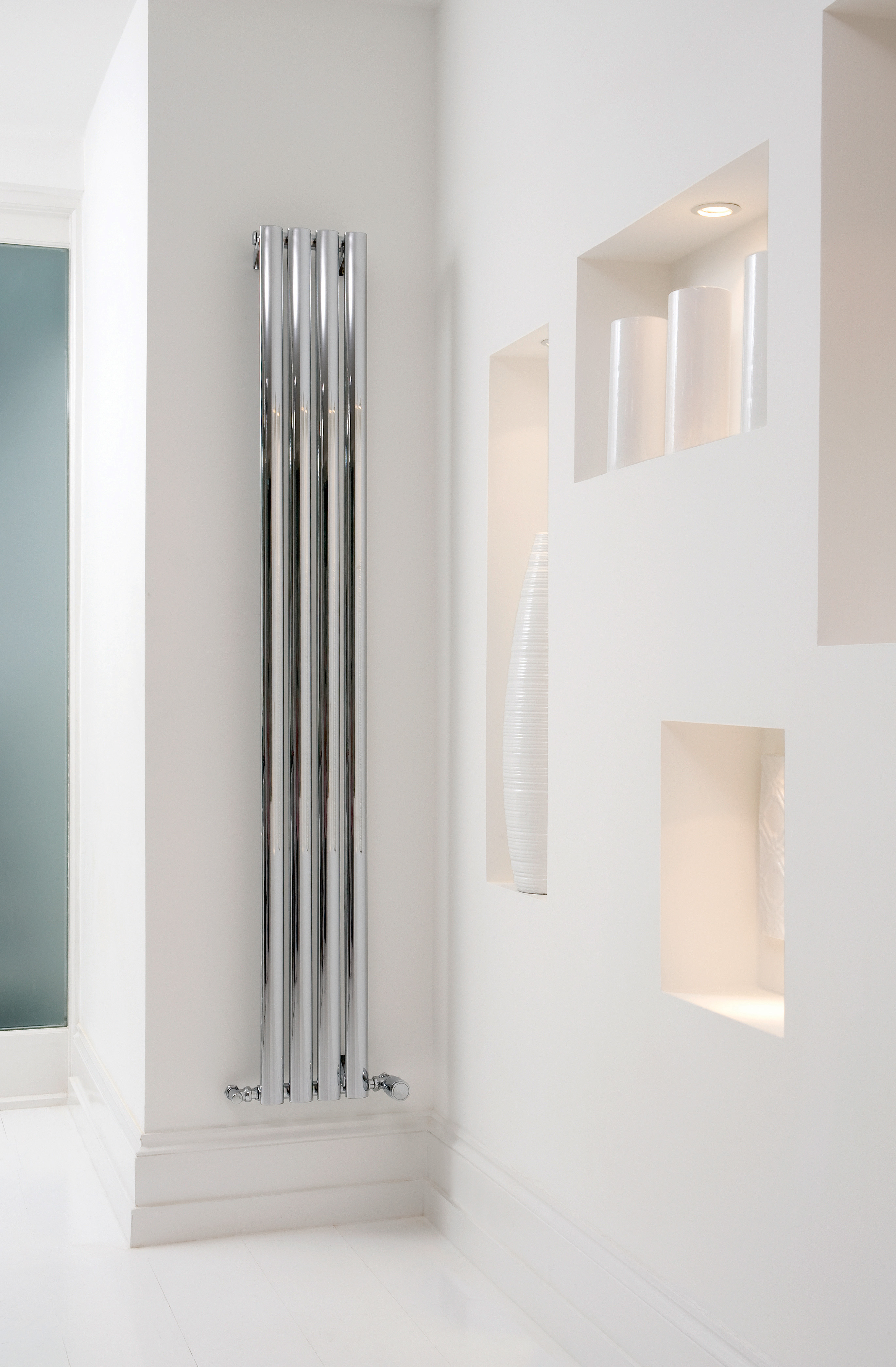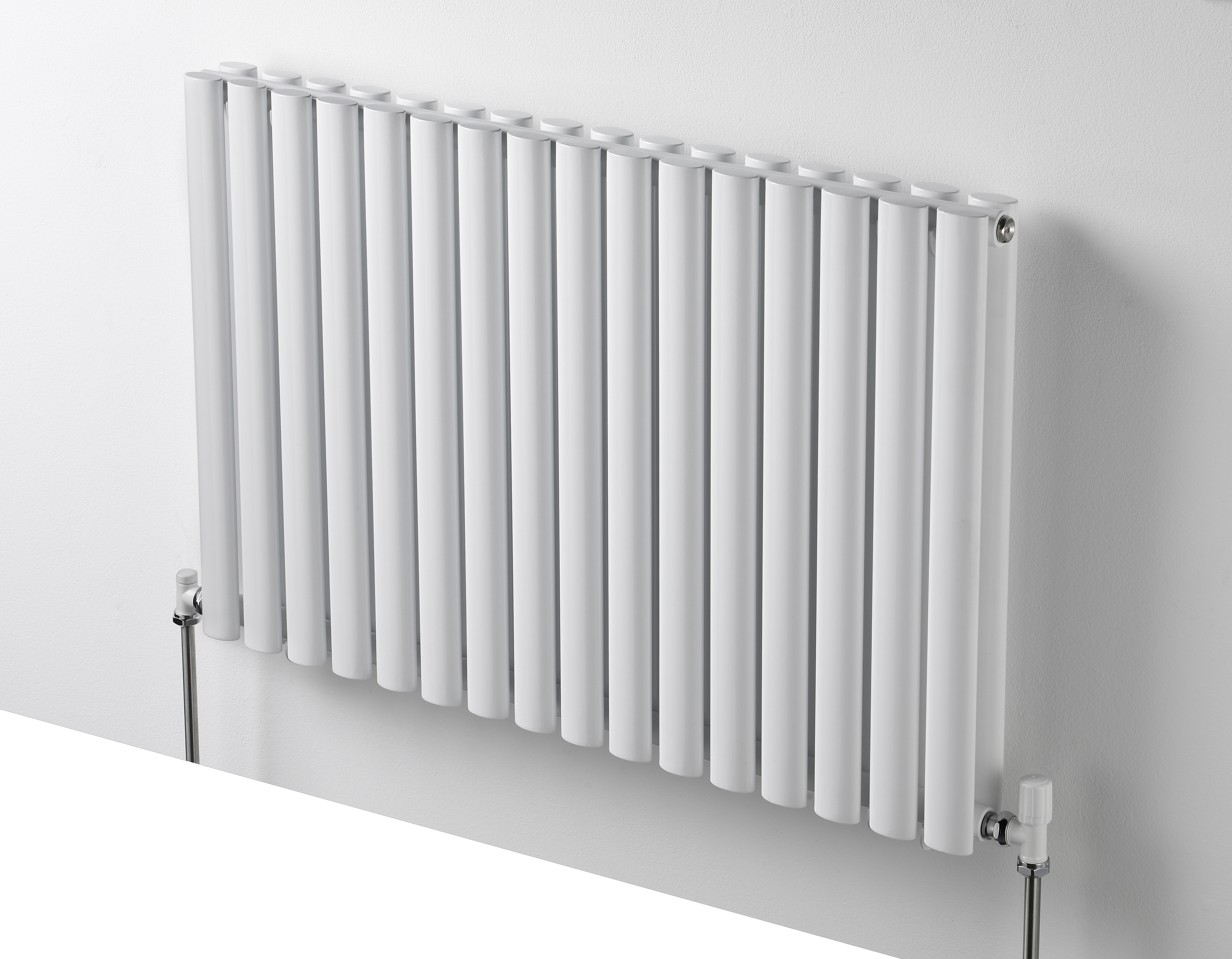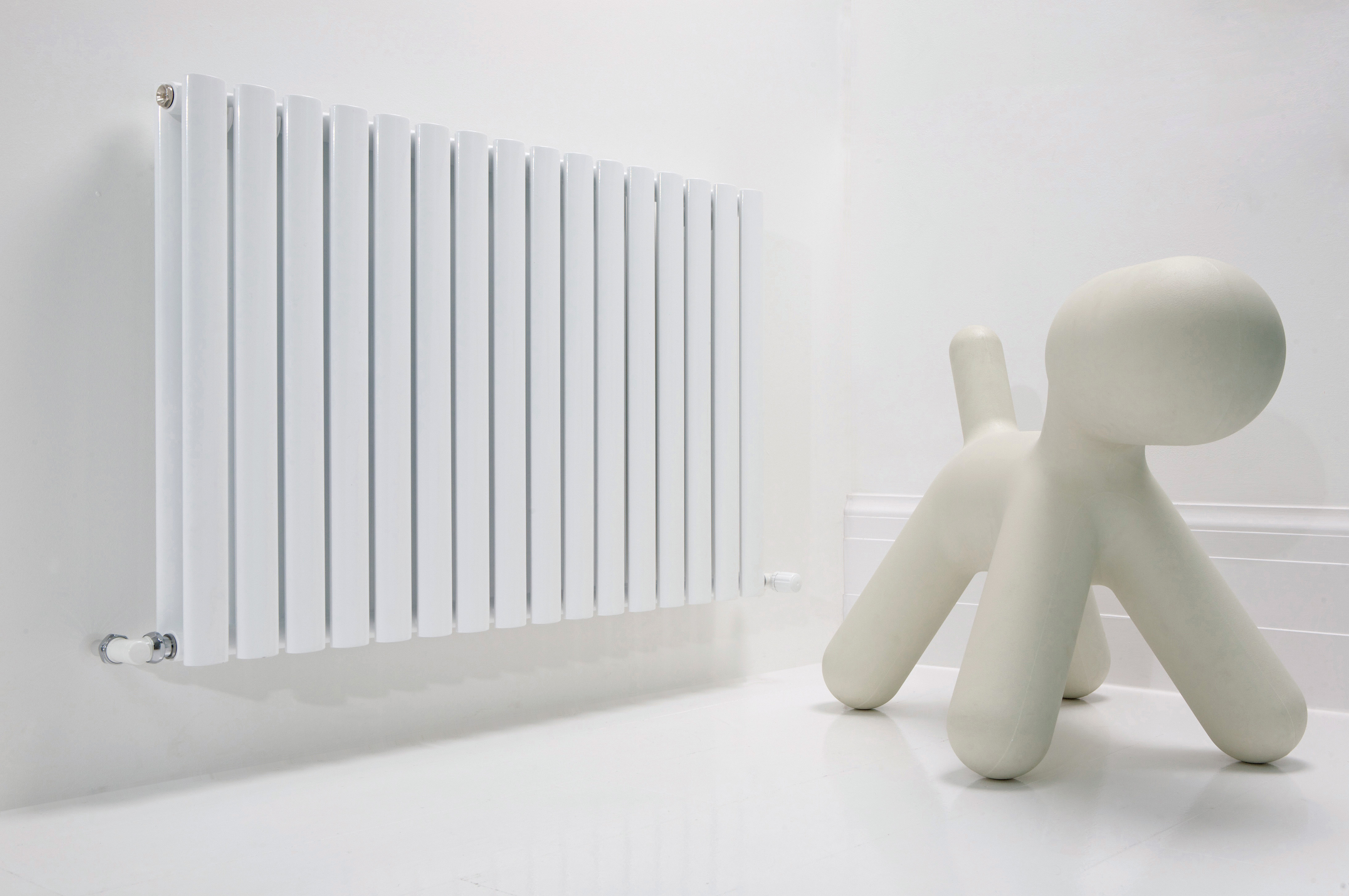 Hravý biely alebo chrómovaný radiátor s oblými tvarmi do detských izieb, spálne, haly alebo pracovne.